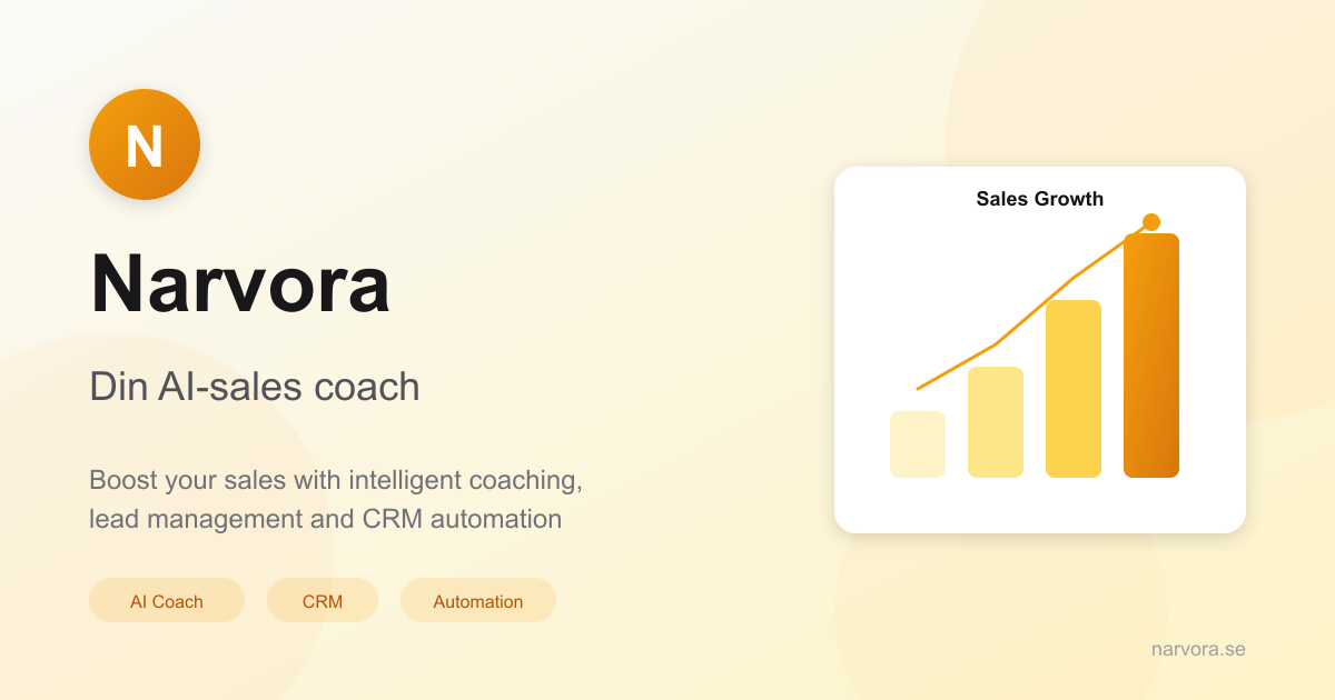 "Narvora är en svensk AI-startup som utvecklar intelligenta verktyg för säljare. Företagets flaggskeppsprodukt är en AI-driven säljcoach som ger personlig träning, realtidscoachning och datadriven analys. Med integrationer med ledande CRM-system som HubSpot, Salesforce och Pipedrive hjälper Narvora moderna säljteam att nå sina mål snabbare."